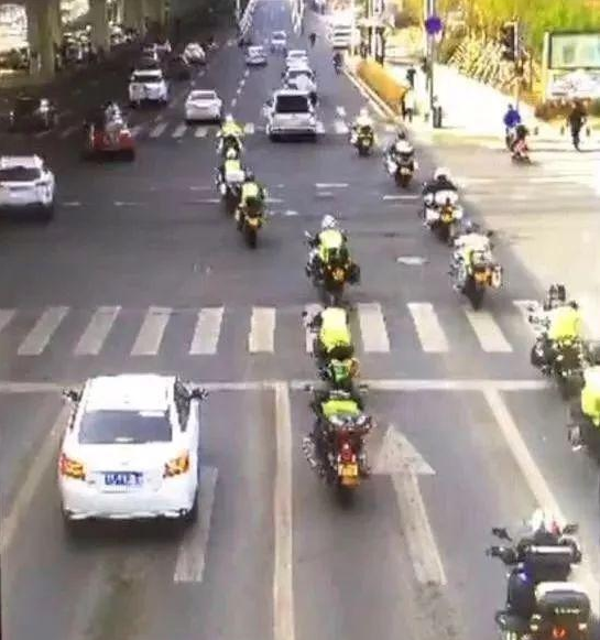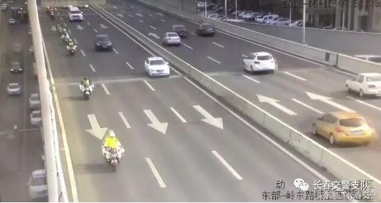 5月13日7时45分左右,长春市公安局交警支队指挥中心通过视频巡检,发现在东部快速路东荣大路桥上有一个摩托车队,大约有20辆摩托车左右。车队中部分摩托车驾驶员穿着黄绿色反光马甲,而且前方的两辆摩托车还打着爆闪灯。