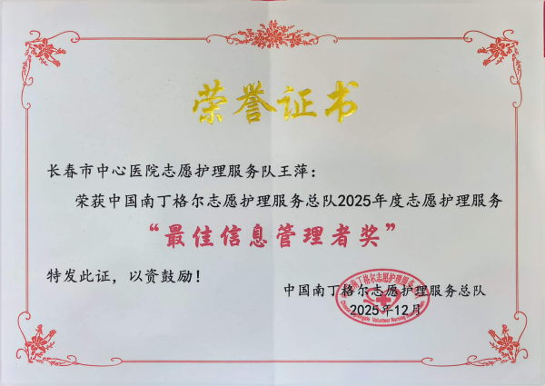 本次评选中,北京安贞医院吉林医院·长春市中心医院志愿护理服务队从全国1150支队伍、51万余名护理志愿者中脱颖而出,综合排名全国第48名,在吉林省21支队伍中综合排名第二。医院志愿护理服务队已经连续五年荣获该总队多项表彰。本年度,志愿护理服务队荣获全国 “活力团队奖”,队长、副院长李冬梅荣获“杰出组织者奖”,护理部任兴艳荣获“最美志愿者奖”,护理部王萍荣获“最佳信息管理者奖”。