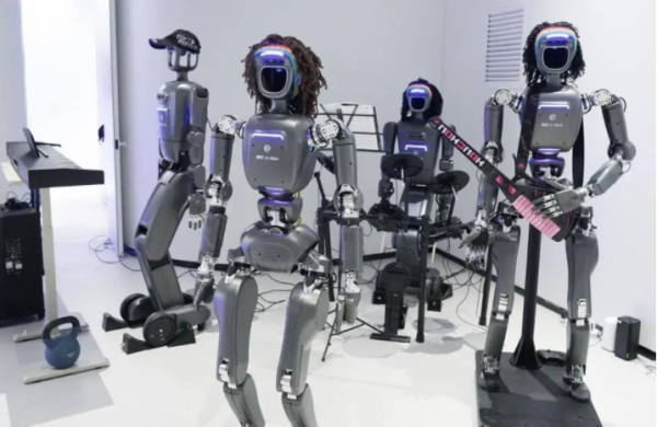 吉林省仿生机器人创新中心应用示范基地里的机器人乐队(受访者供图)