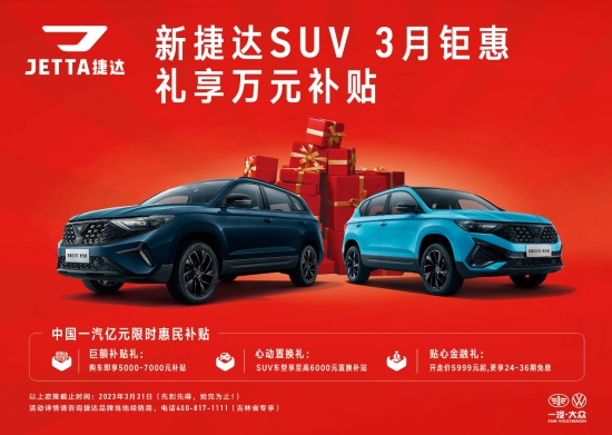 本次惠民补贴活动自3月1日持续至3月31日,居民购车可叠加享受政府购车补贴和一汽集团购车补贴。具体兑付方式上,消费者在购买车辆后登陆银联银闪付平台申请相应补贴,申请通过后即可享受厂家直供的消费红包。