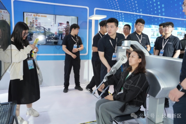 走进长春新区展区,更多国际领先、国际先进和填补国内空白的核心产品及技术,让市民和客商应接不暇。长光博翔无人机有限公司专为教培行业研发的双飞翼TW05;吉林东超科技有限公司可交互空中成像互动屏、展示机、学习桌;中科稀土(长春)有限责任公司护眼灯;长春市东佳科技有限公司AI尚视界查训一体化平台、倍视得读写平台、远距光屏;长光卫星技术股份有限公司“吉林1号”卫星模型;吉林省吉创科豹科技有限公司机械臂、机器人、无人机;长春禹衡光学有限公司编码器、光栅尺、反射式棱镜单色仪;长春市麦迪克智行汽车科技有限公司汽车自动轮角模块;艾仁医药科技有限公司外骨骼式康复机器人;长春信息技术职业学院动漫建模、VR头盔……