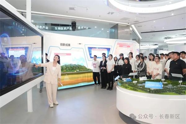 在长春新区规划展览馆,学子们了解了长春新区从蓝图到现实的发展历程。在长春新质生产力发展促进中心,学子们近距离感受科技创新的力量和在培育新质生产力方面的实践成果。长春工业大学的学子们不禁感慨:“别看平时我们就生活和学习在北湖,但这次新区行让我们对长春新区有了全新的认识,让我看到了新区未来的无限可能。”