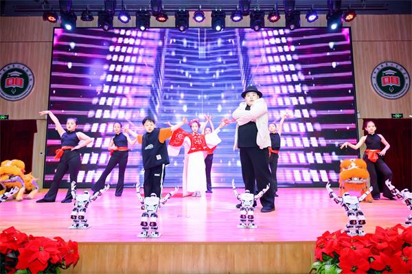 上午9时,现场会在慧仁学校师生带来的原创科技特色节目《科技创意秀》中拉开序幕,巨身机器人舞蹈动作、无人机灯光特效与现代舞蹈深度融合,生动展现了新区青少年“敢想敢创、逐梦科学”的精神风貌。