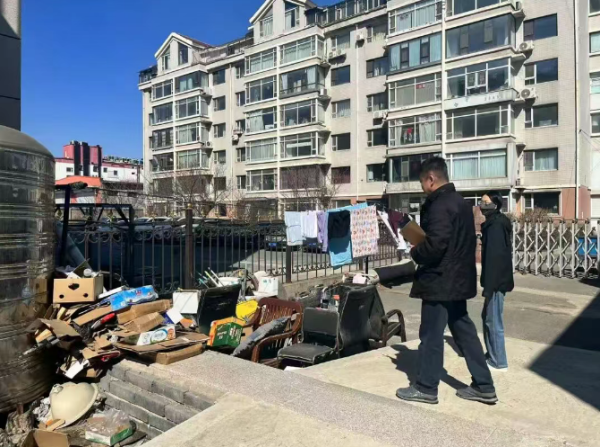 朝阳区民政局逐一排查院落、绿化带、角落等区域,是否存在枯枝落叶、废弃家具、塑料制品、泡沫箱等易燃可燃物堆积情况,同时对消防专用桶配备情况进行核查,确保消防设施器材达标可用。
