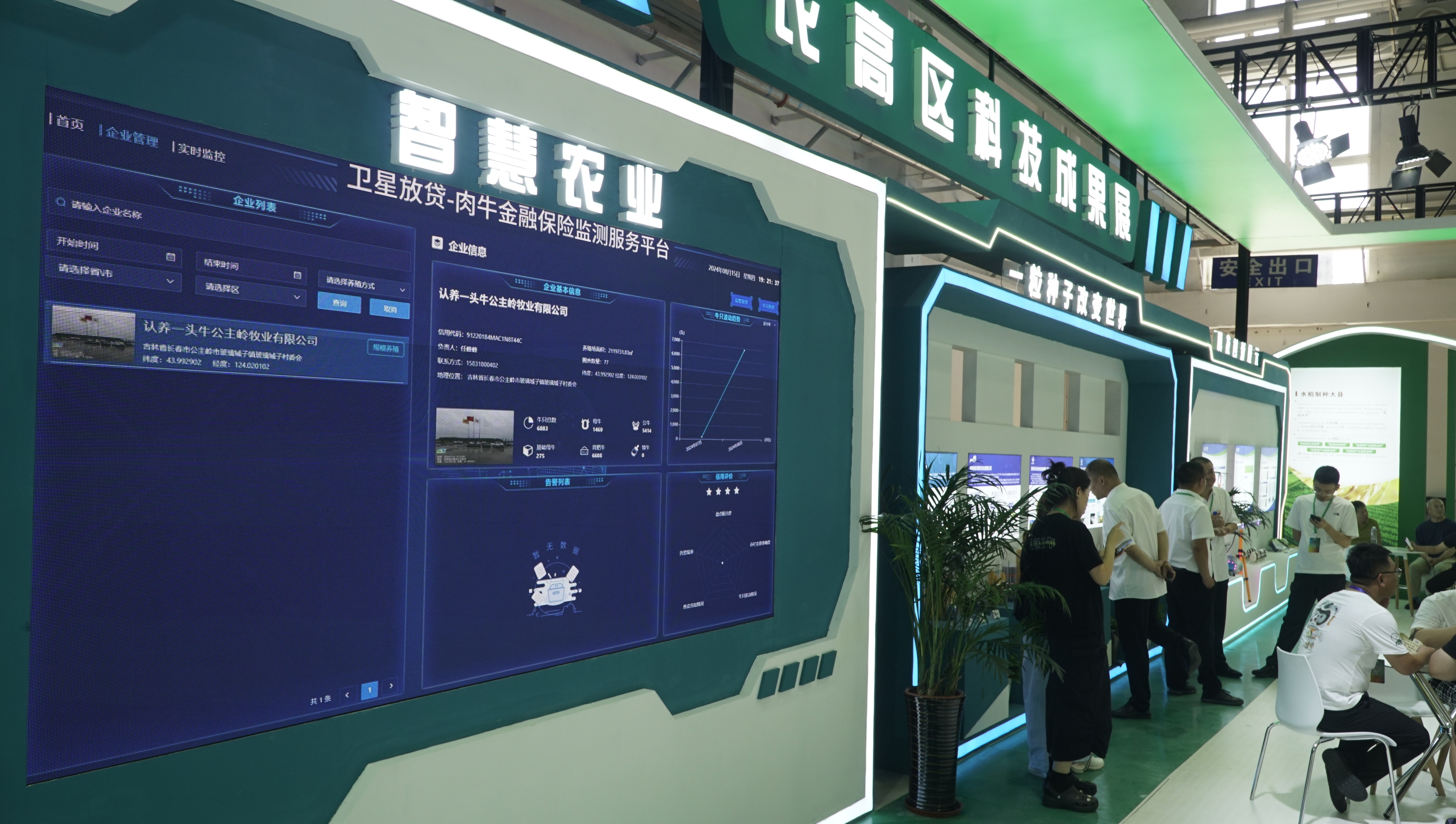 农高区科技成果展区主要包括:智慧农业展示、4家育繁推种业展示和3家科技企业展示,通过数字影像、智能与人工讲解相结合等方式,实现动态互动,给参观者带来更生动深刻的体验。中农阳光公司展出的乡村振兴综合智能服务云平台,鸿翔种业、鸿泽种业、云天化种业、吉农高新种业4家育繁推种业和分子营养与特医食品研发平台,浙江长芯光电科技有限公司、中科康源(唐山)生物技术有限公司3家科技企业展出的自家“招牌”产品和科技成果,让参观者直观了解优质种源和科技赋能新质生产力所带来的有力实践。