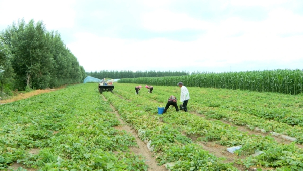 翠绿圆润的香瓜缀满藤蔓,村民们穿梭其间忙着采收,盛夏时节,公主岭市范家屯镇凤响村果蔬种植园区迎来丰收的喜悦。