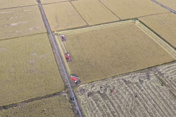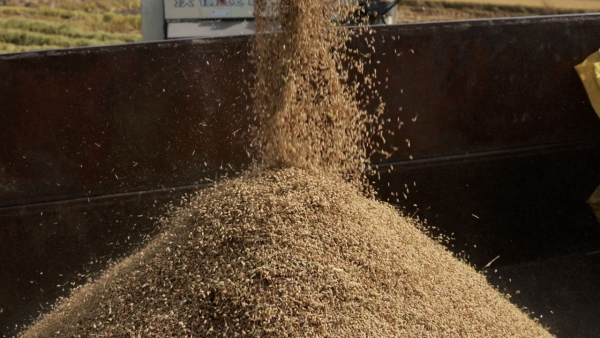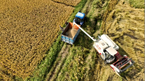 丰收的喜悦同样洋溢在秦家屯镇戥子街村村民王志勇的脸上。看着刚刚收割好的一片稻田,王志勇捧起一把金灿灿的稻谷,兴奋地说:“现在种水稻从种到收全程机械化,又快又好。”