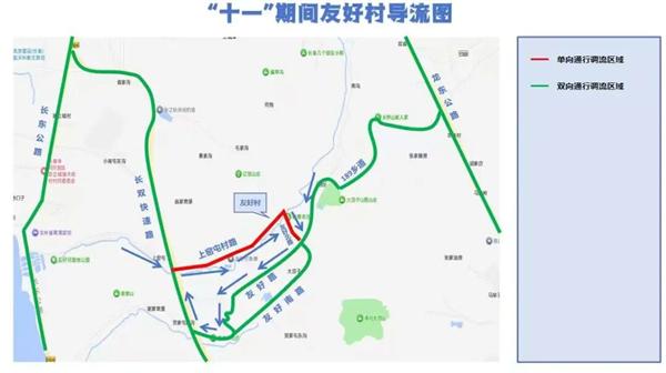 上窑屯村路长双快速路至友好北路段临时实行西向东单向行驶;友好北路上窑屯村路至友好南路段临时实行北向南单向行驶。