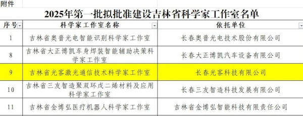 长春光客科技有限公司获批“吉林省科学家工作室”