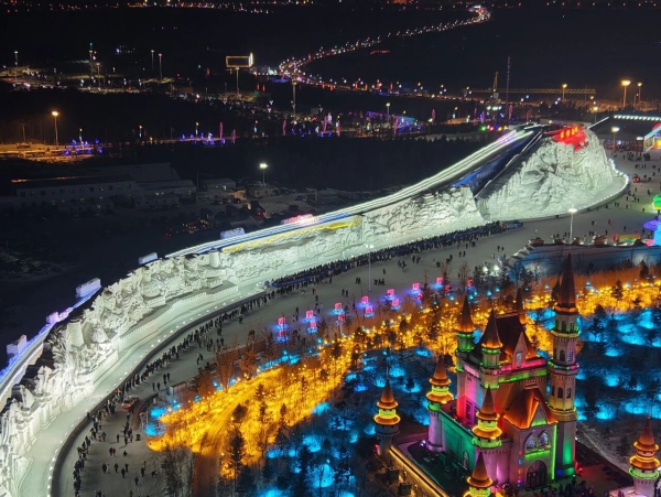 长春冰雪新天地连续7年火爆开园,更是以“冰雪福耀中华·民族大团结”为主题,匠心打造1314雪漂流、520冰滑梯、雪山女神雪雕等自带情感共鸣与传播力的爆点产品,成功让省外游客占比突破六成,成为全国冰雪旅游市场的亮眼IP。