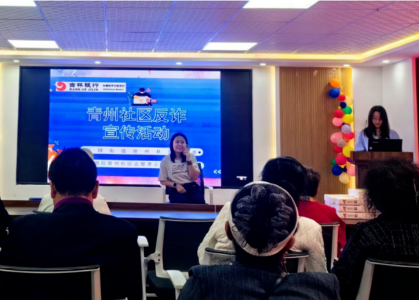 近日,长春市绿园区林园街道青州社区联合吉林银行青州社区志愿者服务站开展反诈宣传活动。