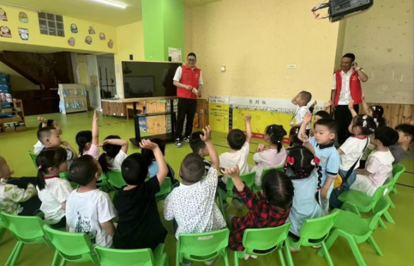 活动中,志愿者结合真实案例和卡通绘本讲解步行过街规则、乘车安全规范、交通信号含义和如何自我保护等交通安全知识,还列举了常见的不文明交通陋习如马路上追逐嬉戏、随意横穿、骑车违规载人等,深入分析这些不文明行为可能带来的严重后果。在模拟道路场景环节中,孩子们化身“小交警”“小行人”,在志愿者的引导下,学习如何安全过马路、识别交通标志,认识“一盔一带”和养成 “一停二看三通过”习惯的重要性。