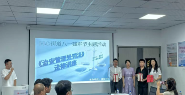 为增强居民法治意识,共建和谐社区,近日,长春市绿园区同心街道湖境社区携手吉林创一律师事务所,举办治安管理处罚法专题普法讲座和图书捐赠活动。