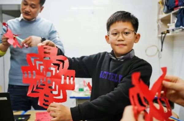 在“剪窗花”手工体验中,老师指导孩子与家长学习剪纸的基本技法。大家纷纷展示自己的成果,并合影留念,留下美好的冬日记忆。