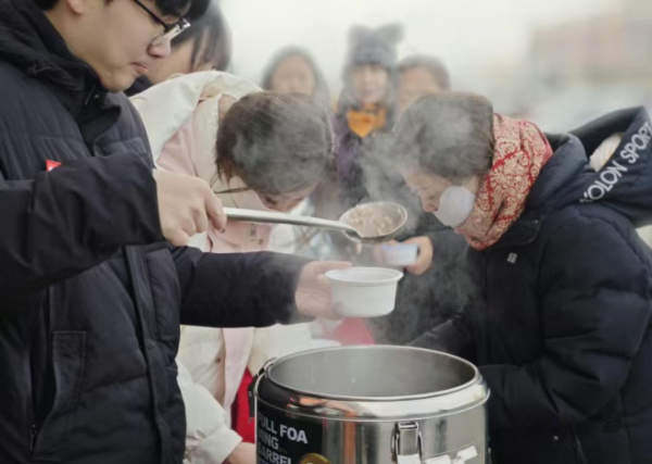 活动当日,工作人员将熬制好的腊八粥分装好,送到了环卫工人手中,叮嘱他们注意保暖,同时感谢他们在冬日里默默守护城区洁净畅通。在独居老人和低保户家中,工作人员送上暖粥,并且仔细询问他们的实际需求。在社区沛泽养老院,工作人员将热粥送到老人手中,还详细了解他们的身体状况,叮嘱养老院工作人员注意用电、用燃气安全。