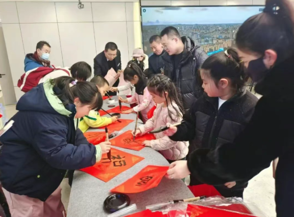 在“写福字”环节,老师介绍了“福”字的文化内涵与书写礼仪,讲解了毛笔的握笔姿势、运笔技巧及“福”字的基本结构。志愿者老师现场示范,从点、横、竖、撇、捺的基础笔画入手,耐心指导孩子们蘸墨、运笔、收笔,手把手纠正书写姿势,让孩子们在轻松的氛围中感受书法艺术的魅力。