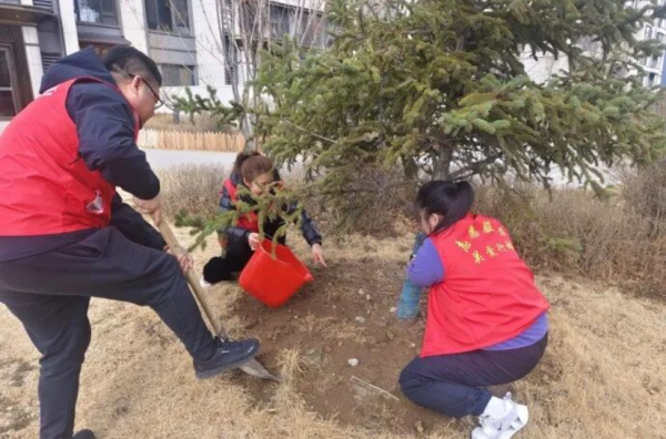 近日,长春市绿园区同心街道湖境社区开展春季绿化造林、垃圾分类宣传志愿服务活动,以实际行动为社区添绿,传播环保正能量。