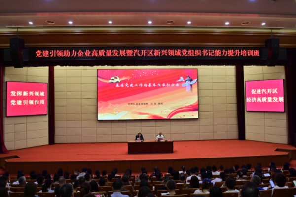 长春汽开区坚持外部选派与内部培养衔接相结合,通过采取“龙头领建、平台统建、派员帮建”等方式,创新党组织组建模式,推动形成“党建引领、党企融合、互助共赢”的发展格局。