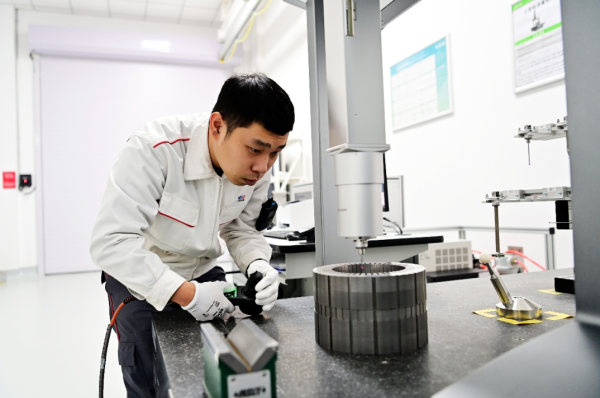 工厂搭载SAP、MES等系统,从接订单到产品生产的全流程都能实时追踪、数据互通,定子产线自动化率达95%,远超行业平均水平。
