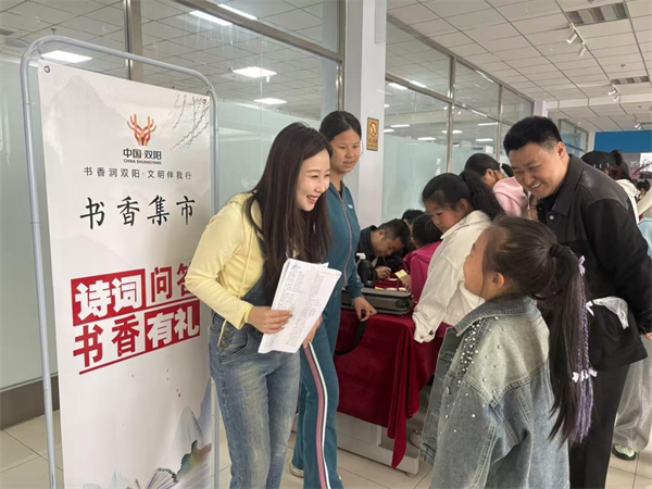 诗词问答·书香有礼摊位人气高涨。题目围绕中小学必背古诗词,吸引小读者们争相答题。书法志愿者现场手写精美书签,家长与孩子共同参与挑战,在趣味互动中重温经典,感受中华传统文化的深厚底蕴。