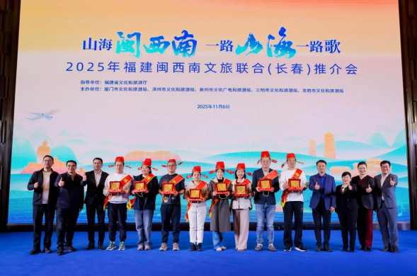 11月6日,“山海闽西南 一路山海一路歌”福建闽西南文旅联合推介会走进长春,为本次东北地区宣传推广系列活动画上圆满句号。活动推出旅行音乐LIVE秀、闽西南联程暖冬精品旅游线路,特邀东北百万粉丝达人前往闽西南踩线并分享“旅行攻略”,闽西南快闪秀也同步亮相长春商圈地标,为当地旅游业者与市民营造了沉浸式的暖冬体验,现场反响热烈。