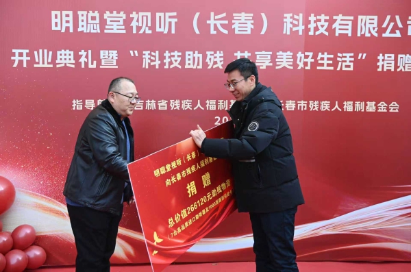 12月6日,在第34个国际残疾人日之际,明聪堂视听(长春)科技有限公司举行“科技助残 共享美好生活” 主题爱心捐赠活动,向长春市残疾人福利基金会捐赠总价值 26.612万元的爱心物资,为特殊群体筑牢视听健康防线,彰显企业社会责任与公益担当。