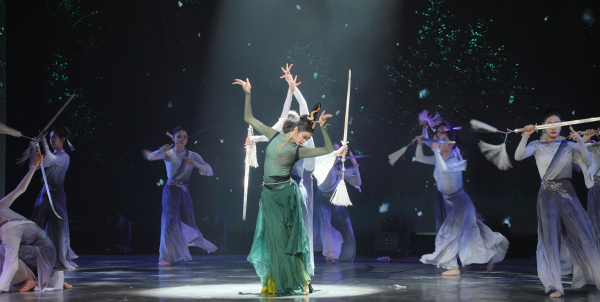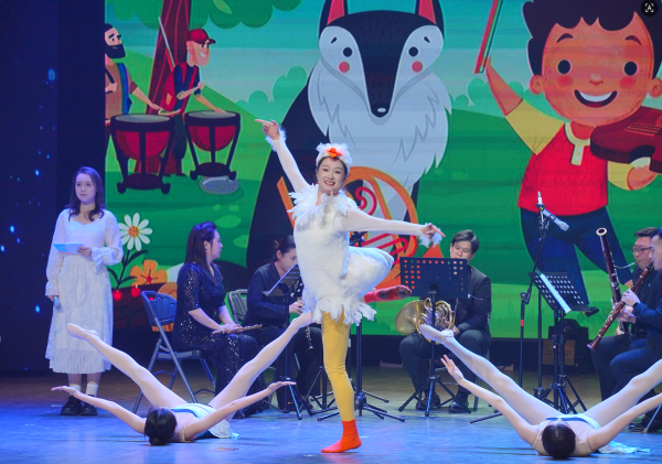 晚会在长春光华学院热情洋溢的开场歌舞《青春起舞》中拉开序幕,迅速点燃全场气氛。随后,吉林艺术学院舞蹈学院表演的群舞《凇》,以优雅灵动的舞姿勾勒出雾凇晶莹、雪落无声的诗意画面,诠释北国冰雪的纯净之美。哈尔滨音乐学院则创新呈现了木管五重奏与舞蹈《彼得与狼》,通过器乐叙事与舞蹈演绎相结合的形式,带领观众走进一段充满童趣的冰雪森林故事,展现了艺术跨界融合的独特魅力。