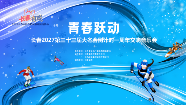 为迎接2027年第三十三届世界大学生冬季运动会倒计时一周年,营造热烈、喜庆的赛前氛围,由长春市文化广播电视和旅游局主办,长影集团有限责任公司等单位承办的“青春跃动——长春2027第三十三届大冬会倒计时一周年交响音乐会”将于1月16日19时在长影音乐厅隆重举行。