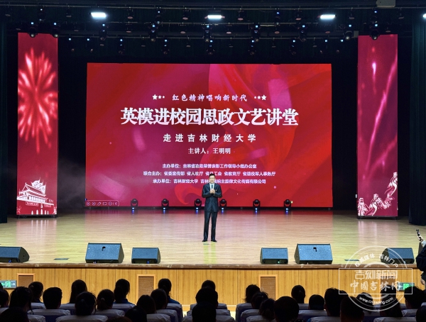 3月25日下午,由吉林省功勋荣誉表彰工作领导小组办公室主办,省委宣传部、省人社厅、省总工会、省教育厅、省退役军人事务厅等单位联合主办的“红色精神唱响新时代——英模进校园思政文艺讲堂”活动,在吉林财经大学大学生活动中心礼堂举行。
