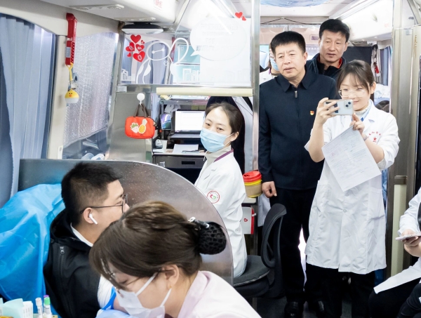 长春市中心血站党委书记、站长宋安昌,副站长吕军辉来到活动现场,对院方积极组织、医护人员踊跃献血的付出致以诚挚感谢。随后,他们登上献血车,看望献血者,关切询问身体状况,并耐心细致地提醒献血后的注意事项。